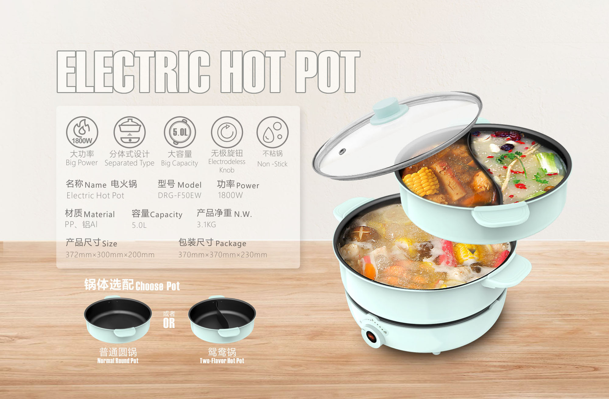 高效加热:电火锅配有高效加热管,加热快速均匀。由于过热保护技术,当炉板温度高于设定数据时,电器将无法工作。注意: 当温度低于设定数据时,炉子将继续工作。